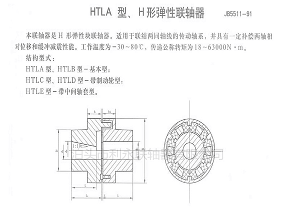 H形彈性塊聯(lián)軸器是利用若干個H表狀的彈性件,并將主、從動端半聯(lián)軸器的凸塊對應插入H形彈性件之間,以實現(xiàn)兩半聯(lián)軸器的聯(lián)接。