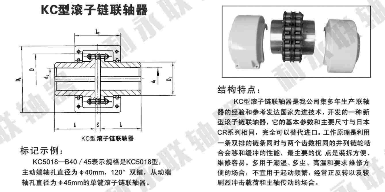 KC系列鏈條聯(lián)軸器基本參數(shù)和主要尺寸(單位:mm)