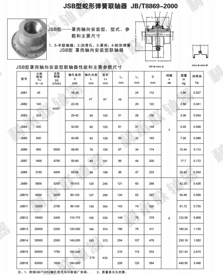 4、 噪聲低,潤滑好 5、 結(jié)構(gòu)簡單,裝拆方便 6、 允許有較大的安裝偏差 J 型蛇形彈性聯(lián)軸器(JB/T 8869-2000)