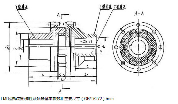 1.LMD(MLZ)系列梅花形彈性聯軸器主要由兩個帶凸爪的半聯軸器和中間的彈性體組成。中間彈性體與兩個半聯軸器的凸爪密切嚙合并承受徑向周向擠壓以傳遞扭矩,當兩軸線有相對位移時,中間彈性體發生相應的彈性變形,起到自動補償位移的作用。